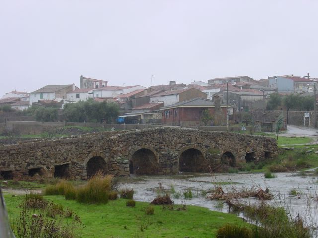 Situado a 100 metros al este del puente actual, sobre el río Ayuela. Se conservan los restos de los sillares que aún se conservan, delimitan una anchura de 6 metros, la que tendría la calzada romana de la Vía de la Plata, la vía XIV del itinerario Antonio, que cruzaba el río Ayuela.