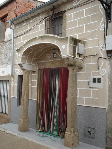 Portada Popular en Calle Obispo Pavón, 9 Puerta dintelada, enmarcada por un pequeño voladizo y un arco rebajado, con cubierta curva. Se apoya el voladizo sobre columnas y sobre podios. Su fábrica es mampostería y sillería. Tipo Otro Galería imágenes